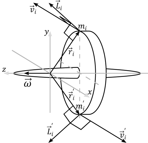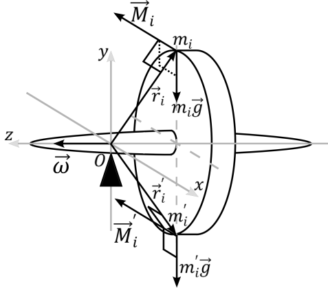 Система координат з початком О, яку було задано, повинна бути інерціальною, тому оберемо її початок на осі гіроскопу в місці дотику з нерухомою опорою.